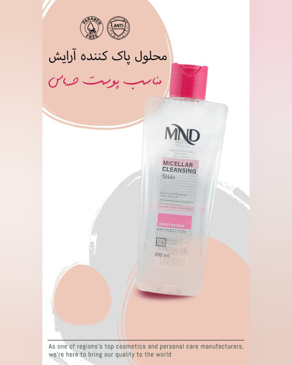 محلول پاککننده آرایش (میسلارواتر) ام ان دی مناسب پوست حساس 200 میل